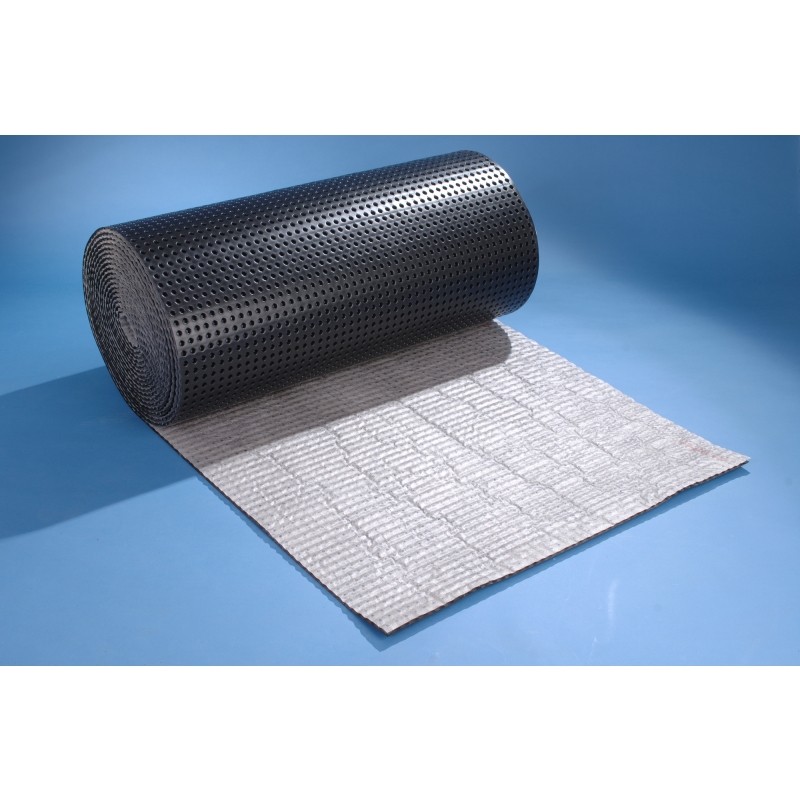 géotextile apparente, les recouvrements longitudinaux et latéraux des lés se font en décollant sur environ 6 cm (3 plots) le géotextile et en venant emboîter les plots, rabattre ensuite la bavette de 6 cm sur la partie recouverte ; information complémentaire : Draina G10 peut être utilisé comme sous-couche de drainage sous carrelage scellé (DTU 52.1) dans les cas suivants, terrasse sur terre-plein non fermé en périphérie, terrasse sur vide sanitaire non fermé en périphérie